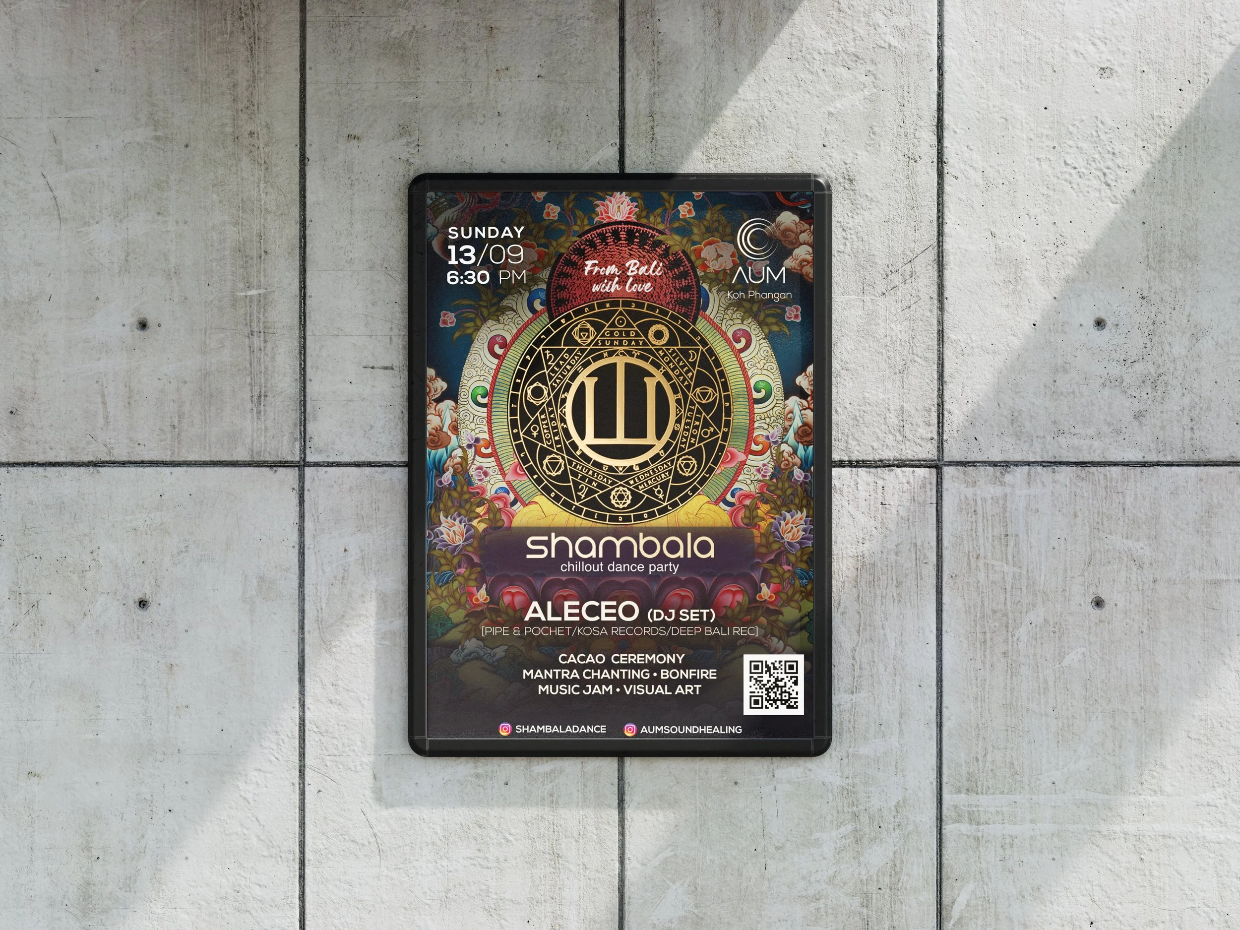 The brief was to create a striking design, which would be consistent throughout all the poster designs. The design incorporated elements that reflect the essence of Shambhala, which is a mythical and sacred place in Tibetan Buddhism. The marketing materials were created for print posters, social media and website.